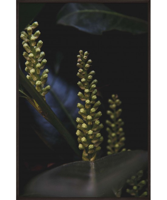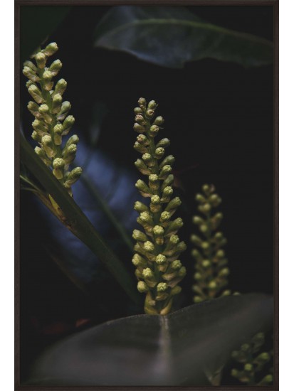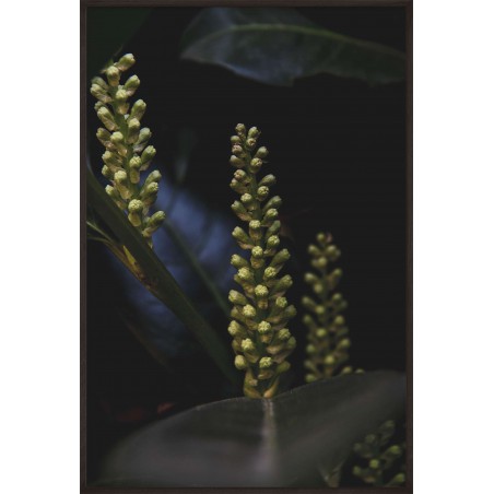 Wall poster with a cherry laurel bush captured in the lens. An exceptional two-toned decorative plant, one colour on the surface, another inside. The atmospheric image of this evergreen bush adds to the mood of a room, encouraging rest and relaxation.