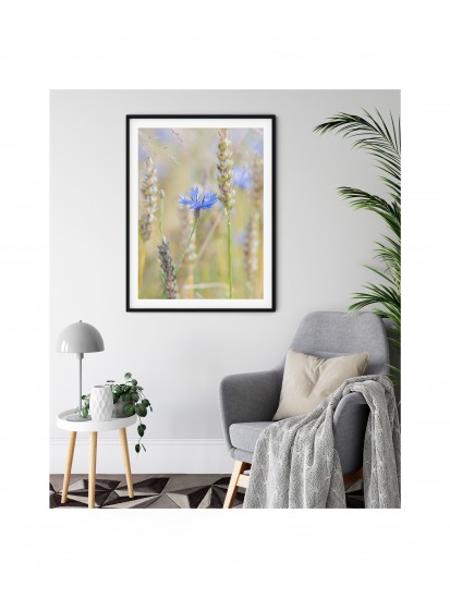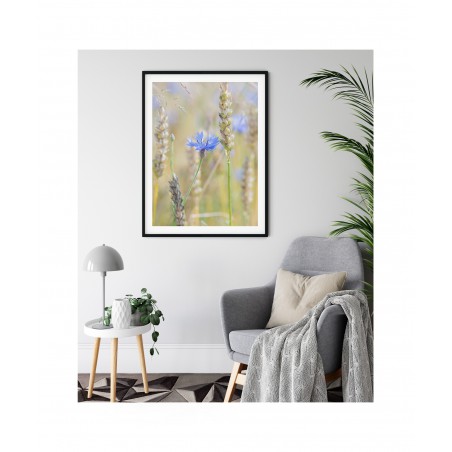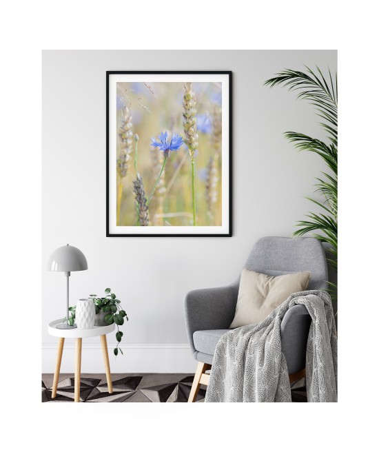 Wall poster with a close-up of individual ears of rye. A carefree holiday idyll in the midst of a hot summer captured in a photograph. The ears sway gently and independently in the warm breeze, whole fields moving lazily to form a golden sea with light ripples licked by the wind.
