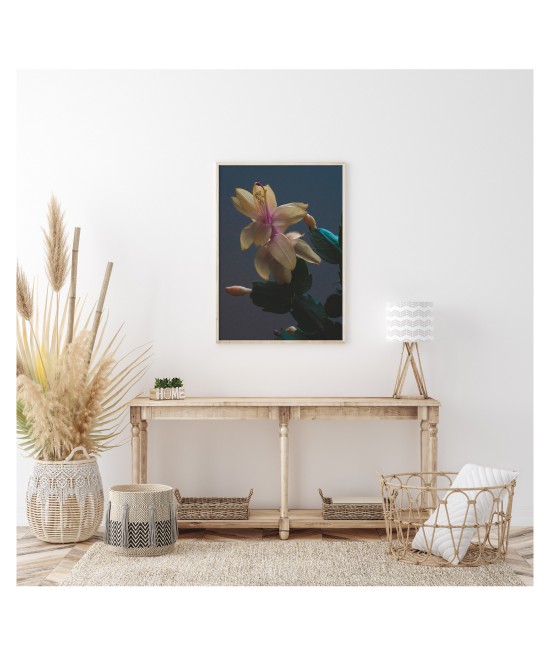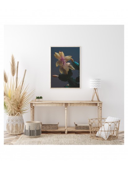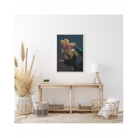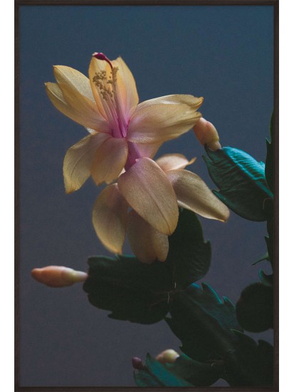Wall poster with a photo of a schlumbergera, a plant from the tropical forests of Brazil. The different stages of blooming symbolise time. This decorative poster is part of the Carmel collection. It represents elegance and dignity. Choose this if you plan to enhance your surroundings in an atmospheric way. It heightens peace and provides inspiration even in the toughest situations. Perfect for neutral rooms and elegant offices.