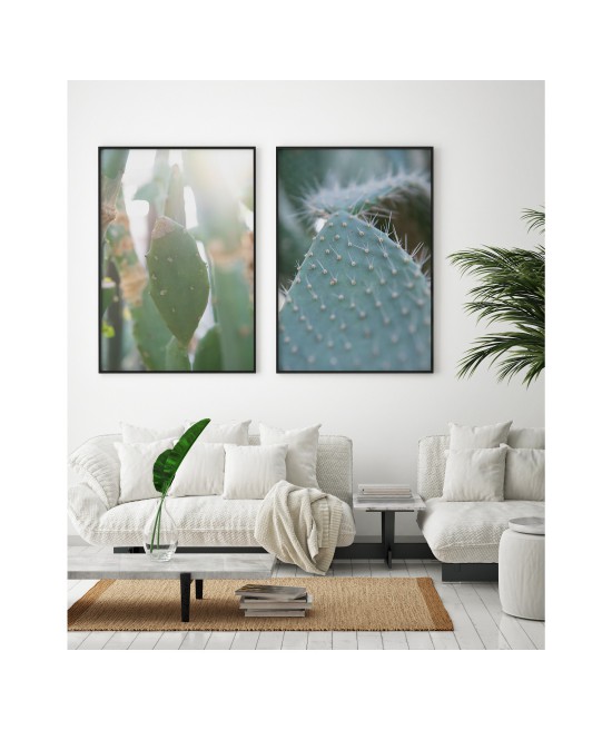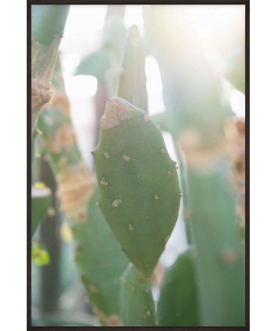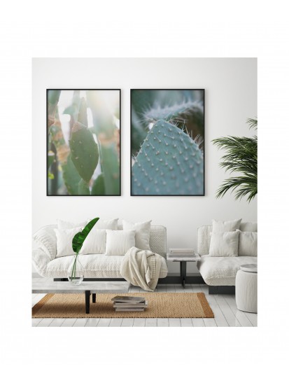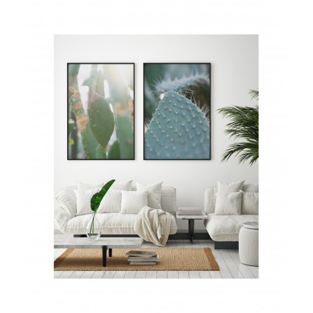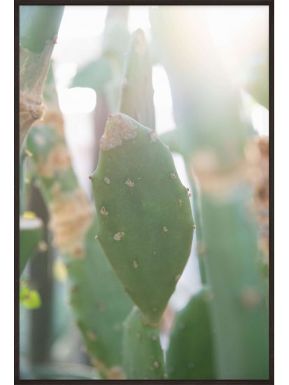 Wall poster depicting cactus in the sunlight. Cactuses are extraordinary plants, accustomed to life in desert conditions, spiked on the outside, storing life-giving water inside. They have a range of practical applications, and are also used as decorative plants These plants are characterised by their slow growth and longevity. A decorative poster which lights up the room.