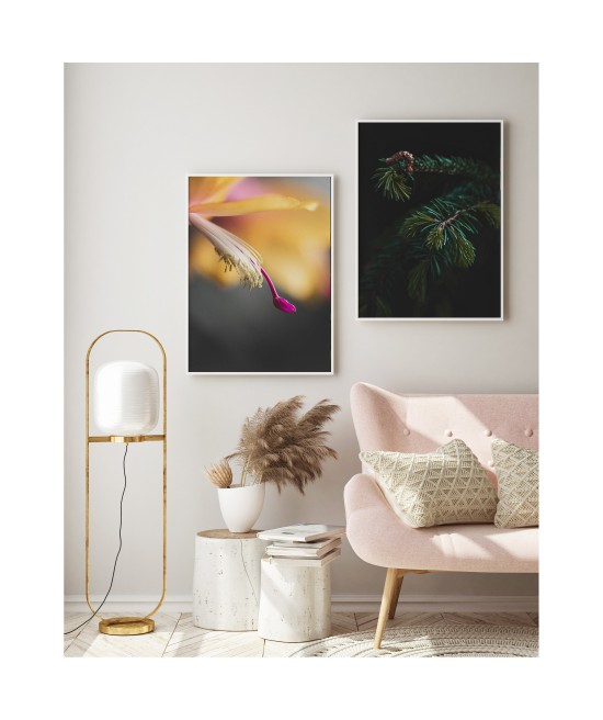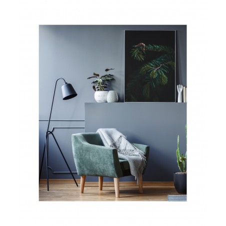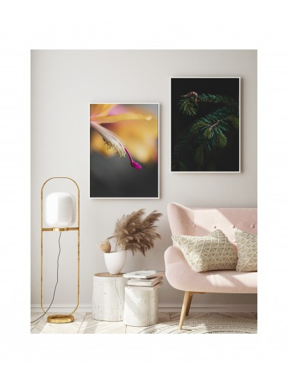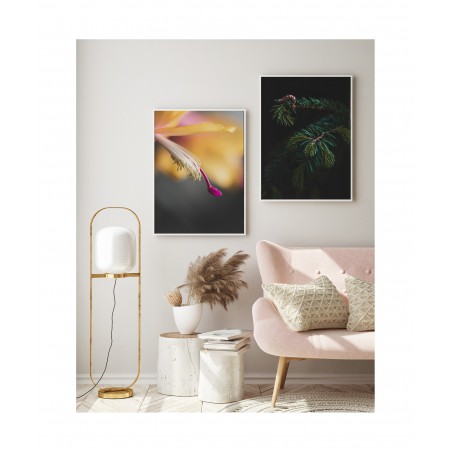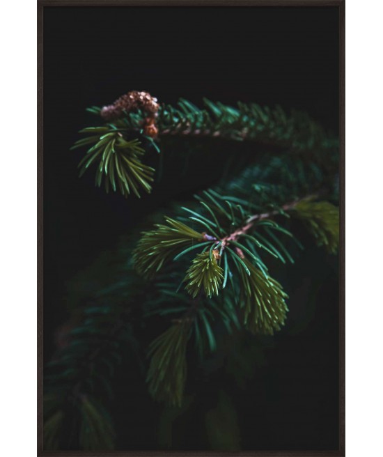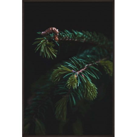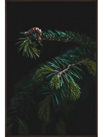 Wall poster depicting the branch of an evergreen spruce tree. In the past it was believed that the spruce gave protection against evil, impure forces, so the tree was often given a place in human settlements to provide a barrier against negative powers, magic and spells. The spruce symbolises perseverance and stamina, as well as hope and renewal. The ideal decorative poster for rooms with a dark colour scheme.
