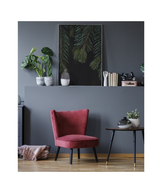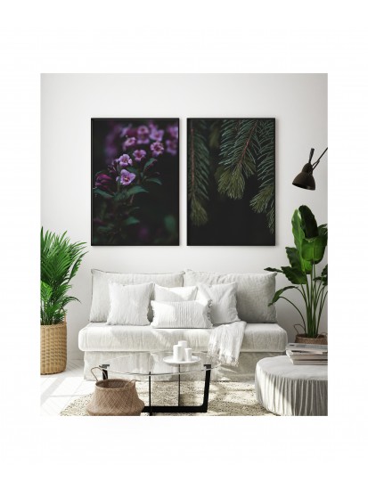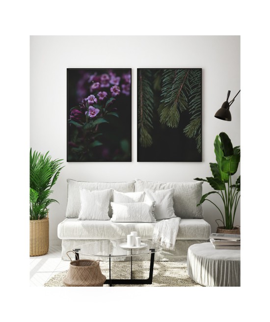 Wall poster with a cherry laurel bush captured in the lens. An exceptional two-toned decorative plant, one colour on the surface, another inside. The atmospheric image of this evergreen bush adds to the mood of a room, encouraging rest and relaxation.