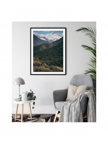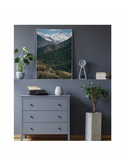 Decorative poster with a lone hero hidden in a mountainous Moroccan landscape. A poster for the wall of someone active, who combines success in their private and professional lives with everyday sporting activity. Remember that not everyone will uncover the secret of the poster, and a minor detail from the grand Atlas mountains landscape will remind you of the adrenaline you experience in mountainous spaces.