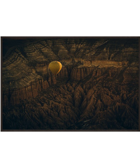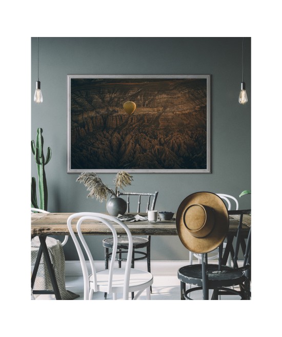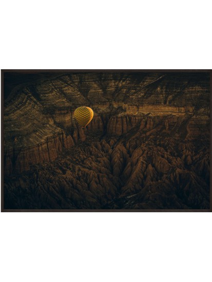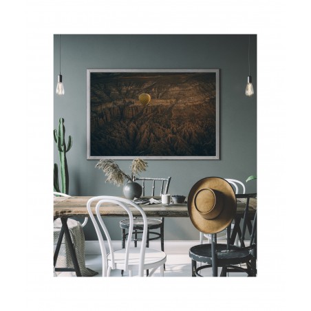 Wall poster of some beautiful scenery. A balloon flight in the lunar landscape of Cappadocia? A surrealistic land in the middle of Turkey, famed for its unusual scenery and the balloon flights organised there.