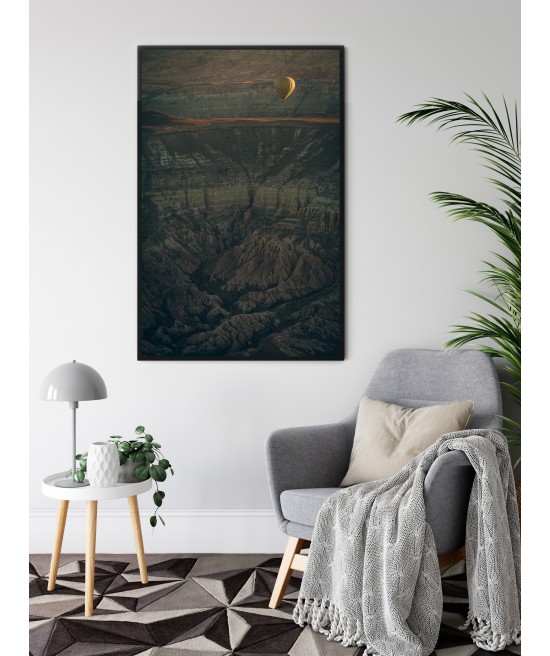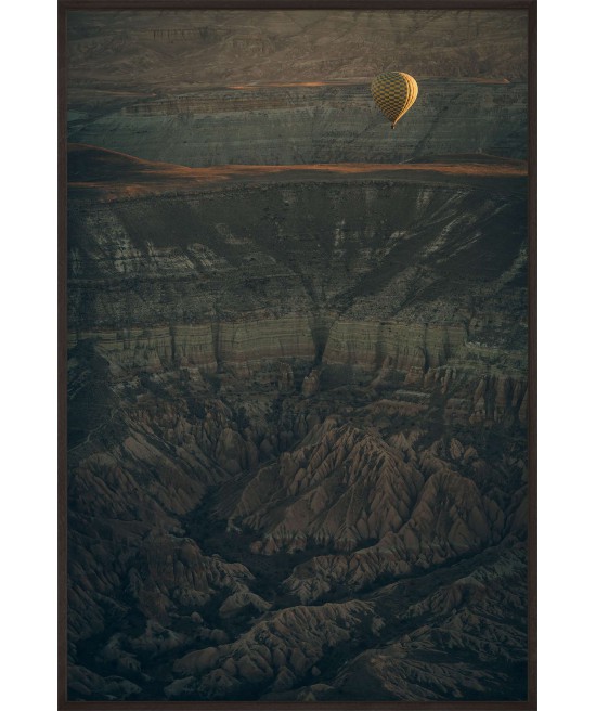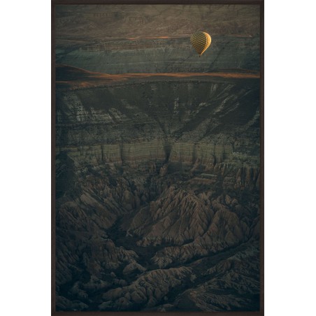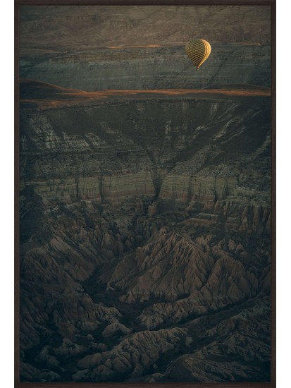 Wall poster of some beautiful scenery. A balloon flight in the lunar landscape of Cappadocia? A surrealistic land in the middle of Turkey, famed for its unusual scenery and the balloon flights organised there.