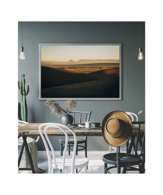 Wall poster showing a sunrise in the lunar landscape of Cappadocia. A surrealistic land in the middle of Turkey, famed for its unusual scenery and the balloon flights organised there. The sun is rising lazily above the horizon, arousing all the surrounding nature into life - it’s going to be qa beautiful day!