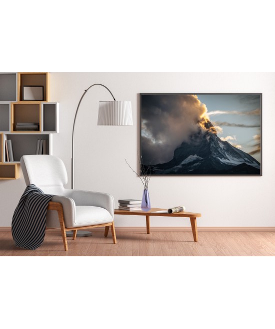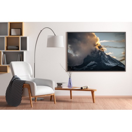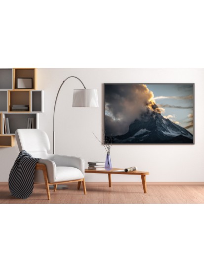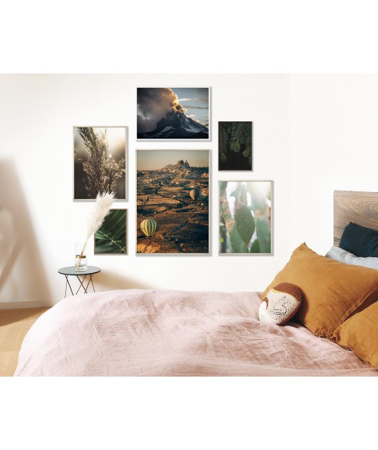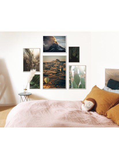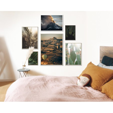 Wall poster with a picture of a sea bay at the height of the holiday season. Lovers of seaside activities in search of a nice breeze. A landscape poster raising many questions - what is this place, will the surfers find the wind to get their speed up? A pastel composition with colourful sporting elements.