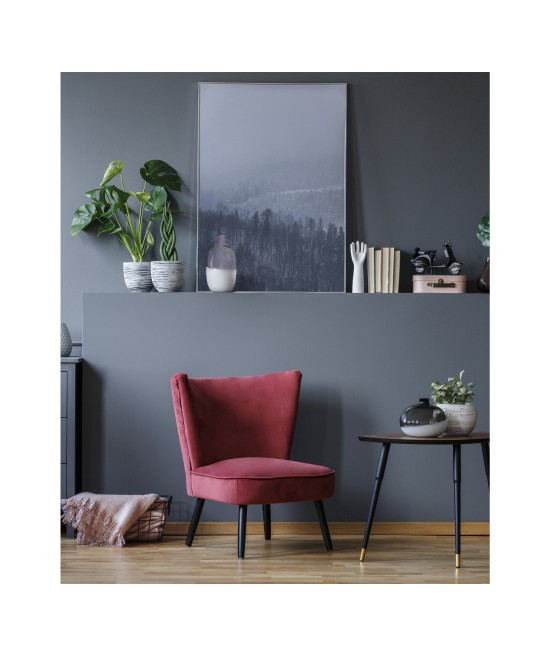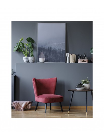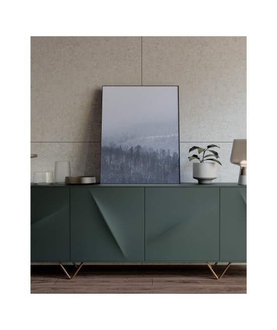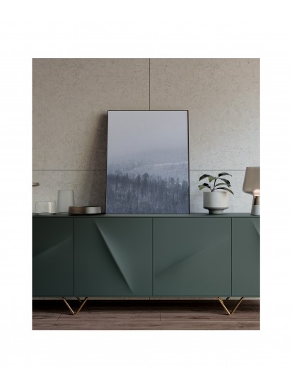 Plakat na ścianę ze zdjęciem górskiego krajobrazu we mgle. Refleksyjny klimat skłania do chwili zastanowienia, pomaga w koncentracji. Plakat dekoracyjny w tym klimacie idealnie nadaje się do nastrojowych przestrzeni o stonowanej kolorystyce.