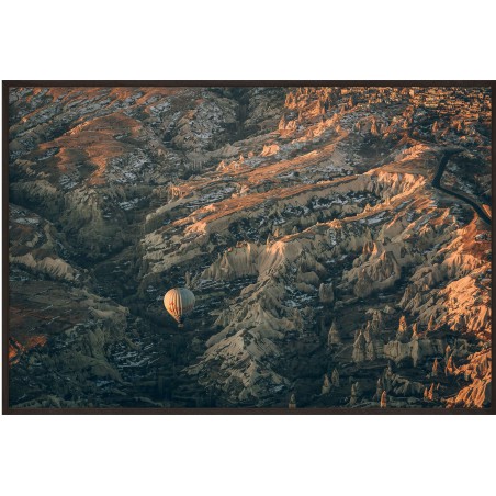 Plakat na ścianę CHECKERED 2 ze zdjęciem pięknej scenerii. Lot balonem w księżycowym krajobrazie Kapadocji? Surrealistyczna kraina leżąca w centrum Turcji, słynąca z niezwykłego pejzażu i organizowanych tam lotów balonem.